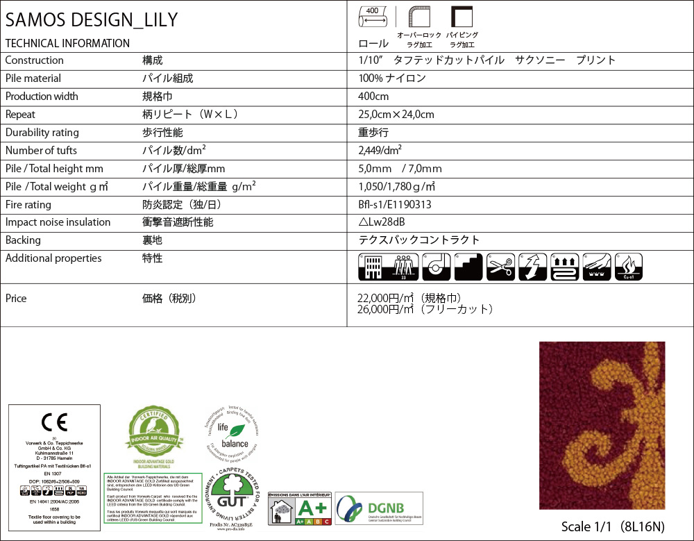 ※上記価格には、ドイツからの輸入経費が含まれますが、別途 輸入サーチャージ ¥3,000/㎡を申し受けます。