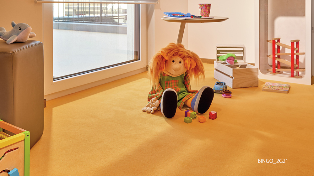 鮮やかな色合いと優れた耐久性を備えた「BINGO」は、若々しく個性的な空間にぴったりのデザインカーペット。