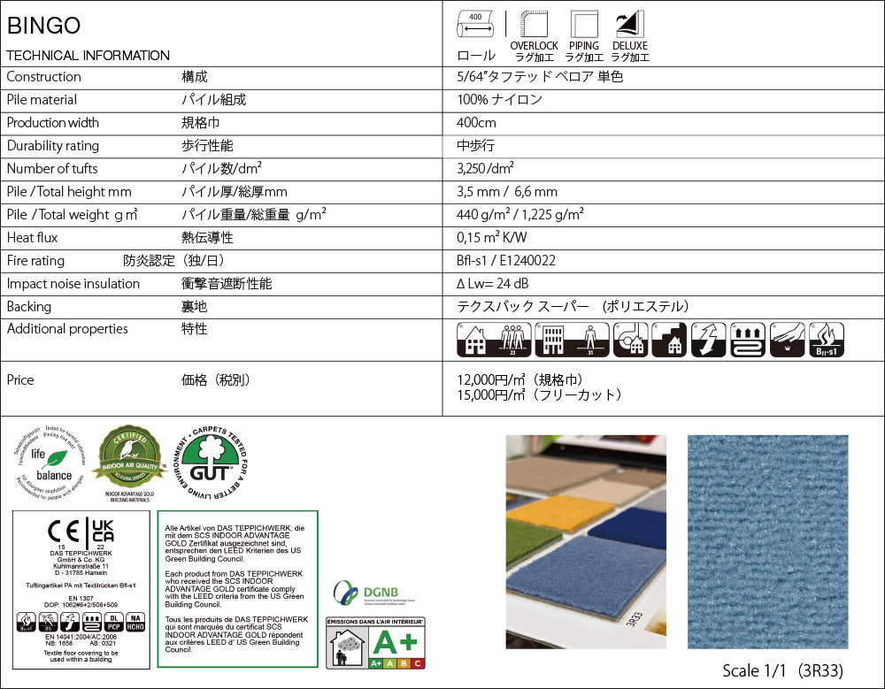 ※別途 輸入サーチャージ ¥3,000/㎡を申し受けます。
