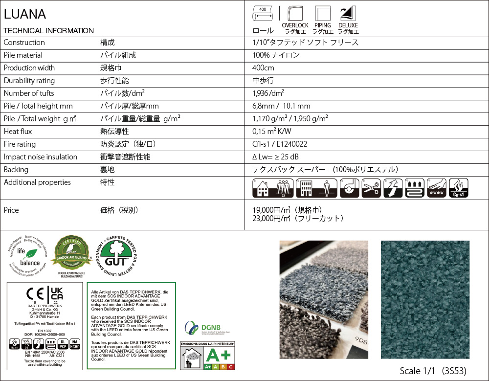 ボリューム感が心地よいソフト・フリーゼ「LUANA(ルアナ)」は、足元に癒しを、そして目にも特別な輝きをもたらします。やわらかな質感とモダンなカラーパレットが調和し、見た目にも触感にも心地よい上質さを感じさせます。