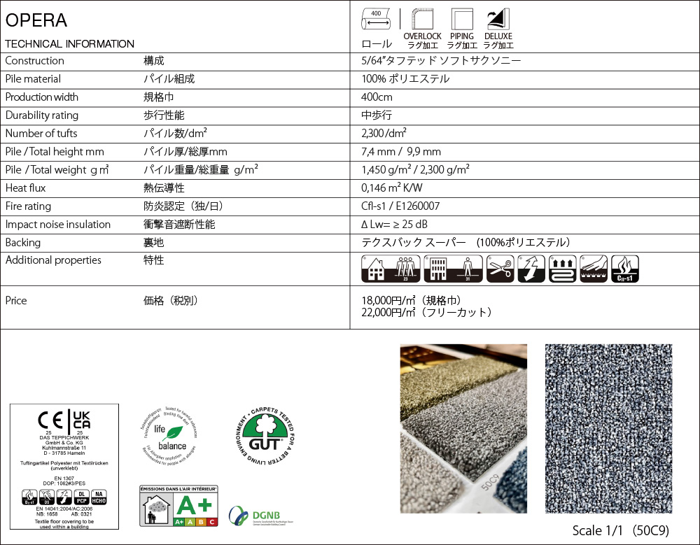 「OPERA」は、繊細で均一なテクスチャーと上品なカラーが魅力の、クラシックでエレガントなカーペット。