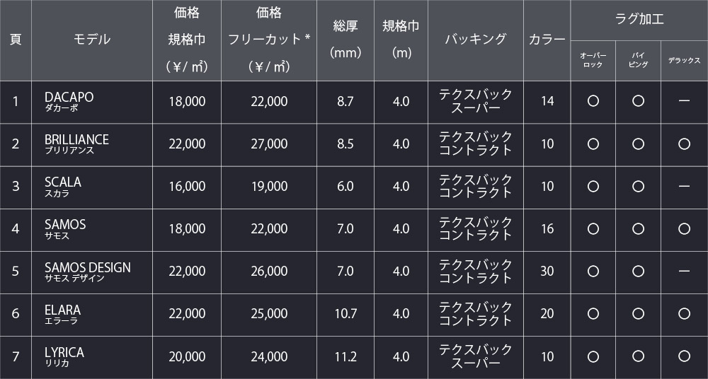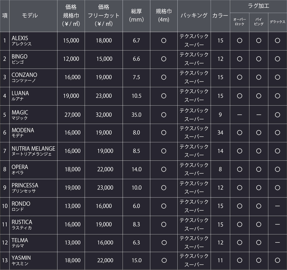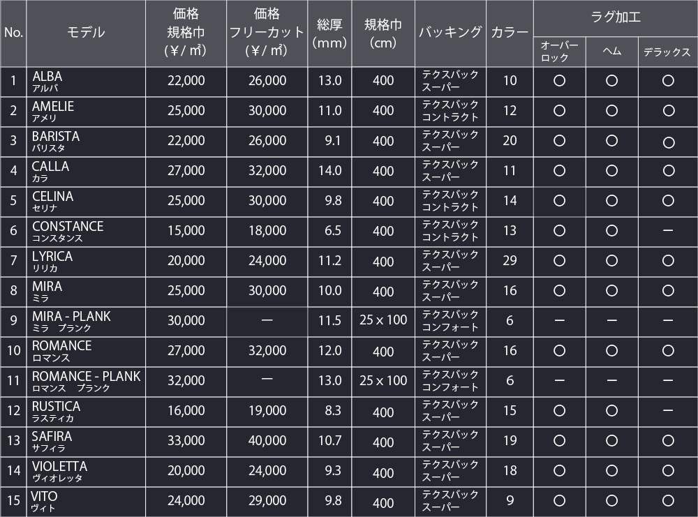 (タイルカーペットは輸入サーチャージ ¥3,000/㎡)